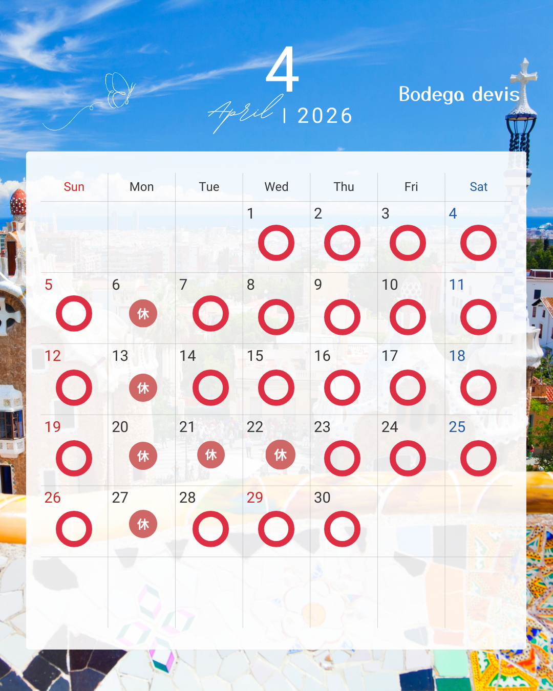 ●【4月営業カレンダー】4/20(月)~4/21(水)は3連休となります。